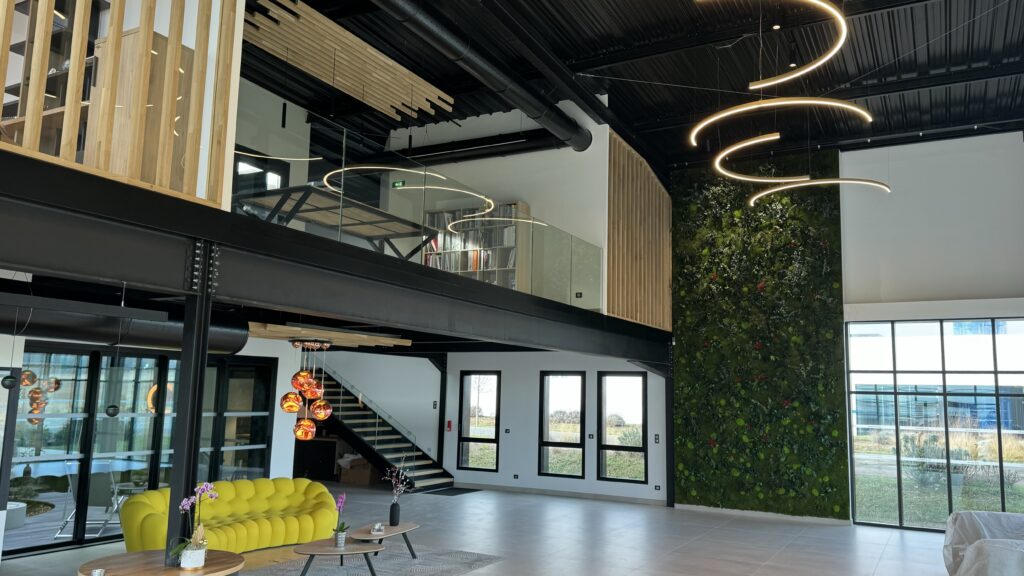 Découvrez notre récent projet d’aménagement intérieur pour des bureaux en Charente-Maritime. Pour une surface totale de 1000m2 sur deux niveaux, nous avons créé un espace moderne et chaleureux, mêlant l’industriel au bois pour une ambiance accueillante. Sur le premier niveau nous retrouvons un espace public et l’espace reservé aux compagnons s’articulant autour d’un grand patio lumineux.